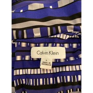 Calvin Klein Womans Blouse Size Large Sleeveless Royal Blue & Black Stylish Cool