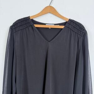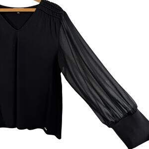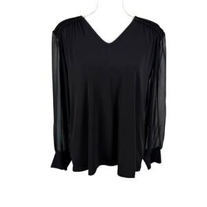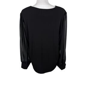 Calvin Klein Women Black Blouse Top Sheer Sleeves Size XL Minimalist Capsule
