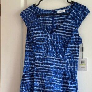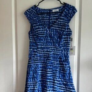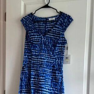 New with Tags Calvin Klein dress size 4. Has an A line fit with back zipper. Soft and stretchy, made of 97% cotton and 3% spandex