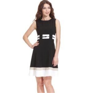 Calvin Klein Women Fit & Flare Casual Formal Dress Sleeveless Black Belt Sz 14