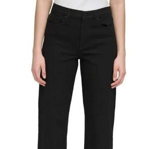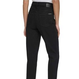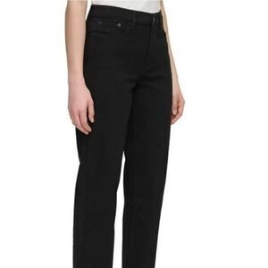 Calvin Klein Women High Rise Straight Leg Jeans Back Pocket Waist Logo Black 14