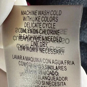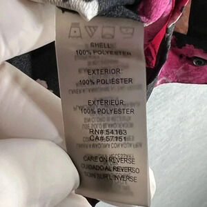 In the realm of blossoming elegance, this Calvin Klein blouse emerges as a vibrant tapestry of floral wonder. The delicate interplay of pinks and peaches on a black canvas evokes a garden in full bloom. Its soft fabric dances gracefully with each movement, while its tailored design ensures a flattering silhouette.