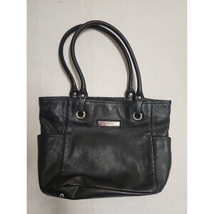 The Calvin Klein Women Large Black Leather Tote Bag is a stylish and spacious handbag perfect for the modern woman. Made from high-quality leather, this tote features a solid black exterior and lining, with matching black handles/straps. The large size offers plenty of room for all your essentials, making it a practical yet fashionable choice for everyday use. With its iconic Calvin Klein branding, this tote is sure to elevate any outfit with its sleek and timeless design. Very good condition. Any questions feel free to ask.