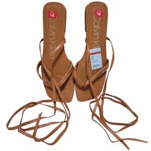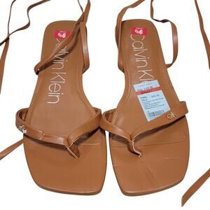 Calvin Klein Women Minola Flat Ankle Tie Thong Sandals Size US 9.5M Brown