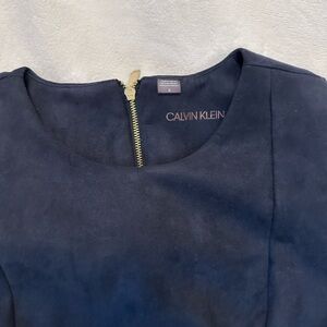 Calvin Klein Women Navy Faux-Suede Tulip-Sleeve Dress Size 6