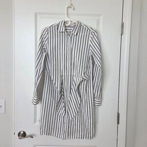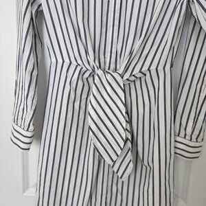 Calvin Klein Women Pin striped Shirt Dress Tie Waist Cotton Blue White Black 4