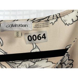 This Calvin Klein Women's Pink Peach Cap Sleeve T-Shirt in size M features chic chain links. Made from superior quality polyester, it offers unmatched comfort and style.