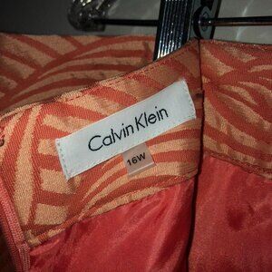 Calvin Klein Women Plus Size 16W Jacquard Coral & Peach Pencil Skirt Leaf Design