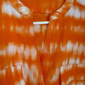 Calvin Klein Women Split V-Neck Roll-Tab Sleeve Button Front Top Orange/White