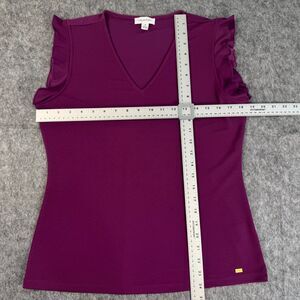 Calvin Klein Women Top Sz M Purple Knit VNeck Cap Ruffle Sleeve