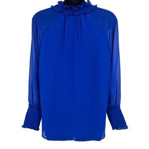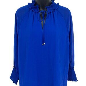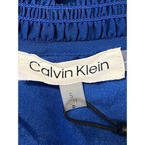 Calvin Klein Women Tunic Top Blouse Size Small S Blue Long Sleeve Ruffle NWT New