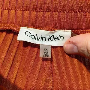 Calvin Klein Women Wide Leg Pants 2X Rust Ribbed Knit Pull on Loungewear Stretch