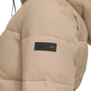 Calvin Klein Women XXL Heavyweight Oxford Puffer Jacket 2-Way Zip Hooded Tan NWT