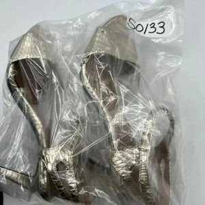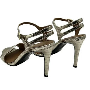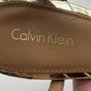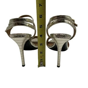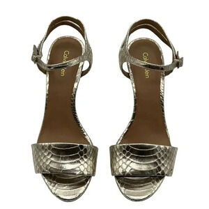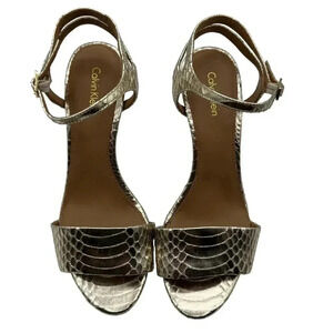 Calvin Klein Womens 10 Nadina Snakeskin Print Gold Stiletto Heels Dress Sandals