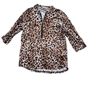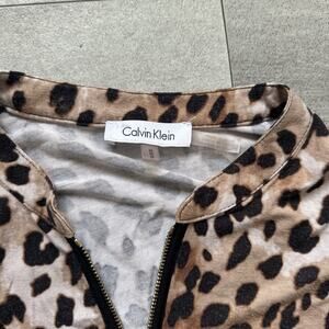 Calvin Klein Womens 1/4 Zip Top Size Mediu Animal Print Leopard Cheetah Mob Wife
