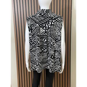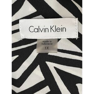 Calvin Klein Women's 1X Black Blouse Polyester Top Geometric Work Chic Stretch