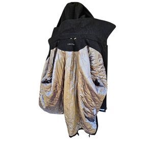 Calvin Klein Women’s 2X Wool Blend Duffle Coat Black Hooded Toggle Front Lined