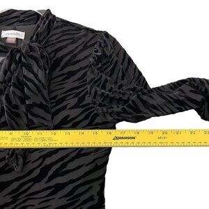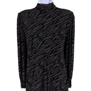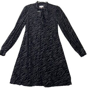 Calvin Klein Womens Size 4 Black Velvet Burn Out Zebra Print Long Sleeve RetroDress