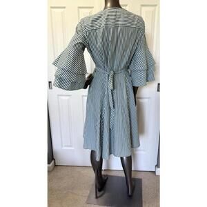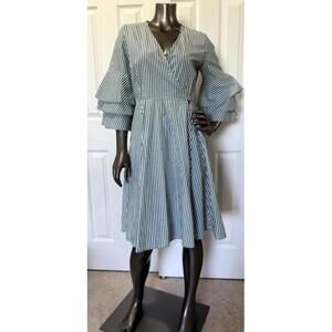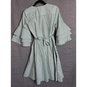 Calvin Klein Women's 4 Striped Bell Sleeve Cotton Wrap Dress Pockets Green White