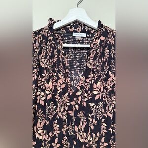 Calvin Klein Women's 8/M Tie-Neck Smocked-Yoke Maxi Dress Fall Black Brown Leaf