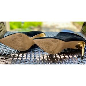 Calvin Klein Women’s Ankle Bootie Stiletto Gold Heel Sz 8.5 Black Suede Leather