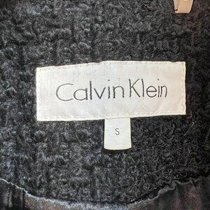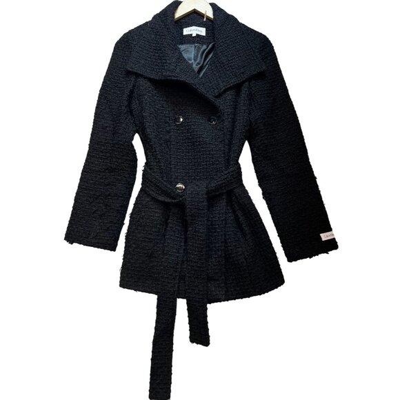 Calvin Klein Womens Basketweave Wool Double Breasted Peacoat Belted Size S Black