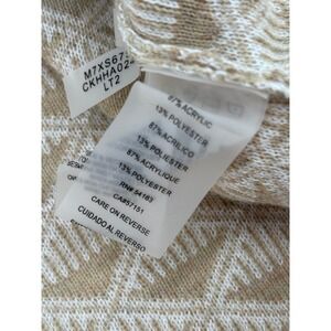 Keywords: Calvin Klein sweater, cowl neck sweater, beige sweater, knit sweater, womens sweater, long sleeve sweater, geometric pattern, casual sweater, large sweater, fall fashion, winter sweater, comfortable sweater, ladies sweater