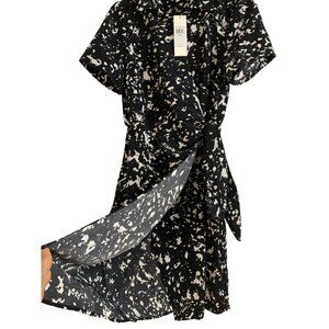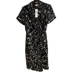 Calvin Klein Women's Black Abstract True Wrap Dress Size 12 7292 NWT Short SLV