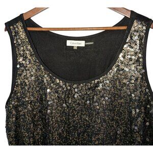Calvin Klein Womens Black Gold Sequin Top 1X Scoop Neck Sleeveless Partywear