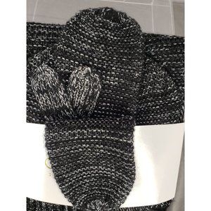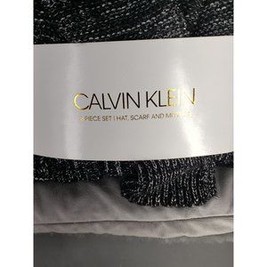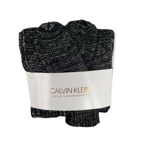 Calvin Klein Women's Black Gray Knit Scarf Hat Gloves Mittens New 3 Piece Set