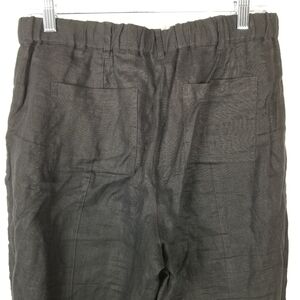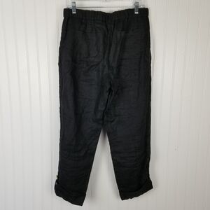 Calvin Klein Womens Black Linen Roll Tab Cuff Pants Size Small Elastic Waist Zip