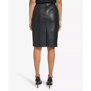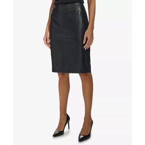 Calvin Klein Women's Black Luxe Faux-Leather Pencil Skirt NWT Size NWT