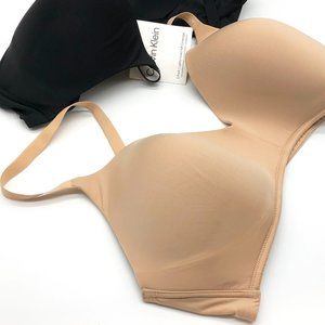 Calvin Klein Womens Black & Nude 2-Pack Lightly Lined Wirefree Full Coverage Bra