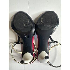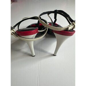 Calvin Klein Womens Black Patent Leather & Red Sole High Heel Sandals With White