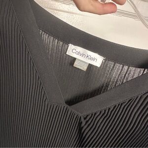 Calvin Klein Women’s Black Pleated Blouse Sheer Long Sleeve L Classic Minimalist