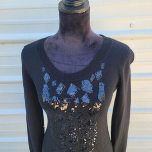 Calvin Klein Women's Black Sequin Embellished Long Sleeve Wool Blend Sweater XS
