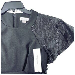 Calvin Klein Womens Black Sequin Short Sleeve Sheath Cocktail Dress Sz 10 NWT