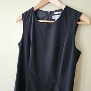 Timeless sleeveless black sheath dress from Calvin Klein, size 6. Hourglass shape with round neck. A classic dress and wardrobe staple! Pair with a colorful blazer or cardigan or wear by itself.