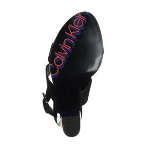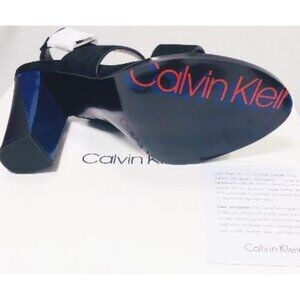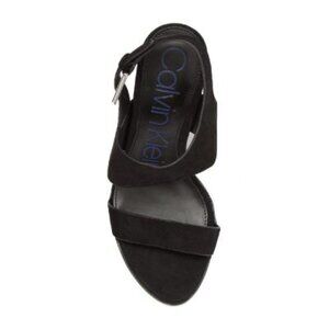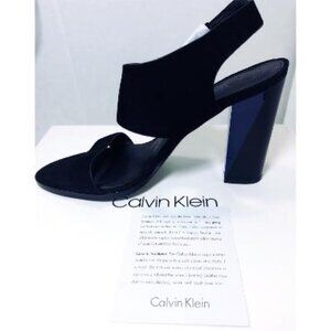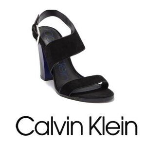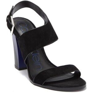 Calvin Klein Womens Black Suede Leather Block Heeled Open Toe Sandals Sz 8.5 New