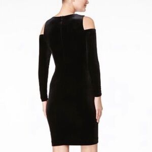 Black Velvet Cold Shoulder Sheath Midi Dress