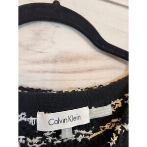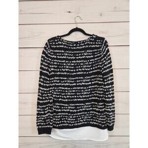 Calvin Klein Women's Black White Stripe Long Sleeve Pullover Sweater Size Medium
