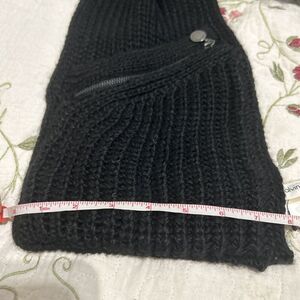 Calvin Klein Women’s Black Wide Knit Pockets Zippers One Size Scarf Wrap NWT