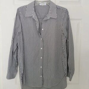 76% Cotton, lightweight, almost new. Elevate your style with this classic black and white striped shirt. Perfect for any occasion.
