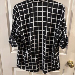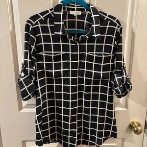 Calvin Klein Women's Black/White Windowpane Boyfriend Tunic Shirt ~ Medium