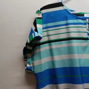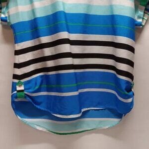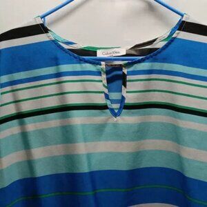 Calvin Klein Women’s Blouse Large Lightweight Striped Short Sleeve With Roll Tab