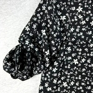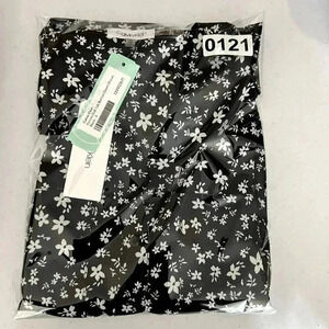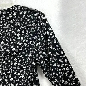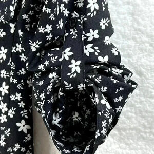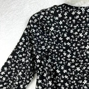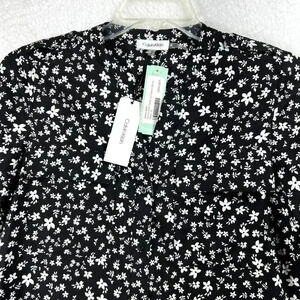 Calvin Klein Womens Blouse S Black White Floral Button Down Top Career Business