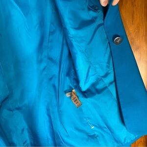 Featuring a stunning aqua turquoise color, this classic piece by Calvin Klein is so versatile! It even has one functioning pocket! In great condition aside from some minor scratches on metallic button.