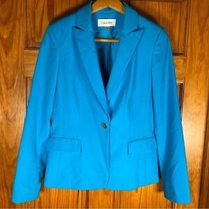Calvin Klein Women's Blue Aqua Corporate Blazer Suit Jacket Single Closure