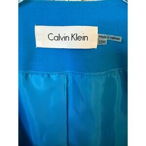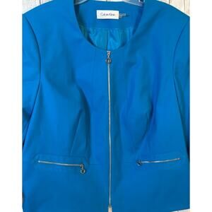 Calvin Klein Women's Blue Collarless Zip Front Cotton Poly Blazer Plus Size 22W