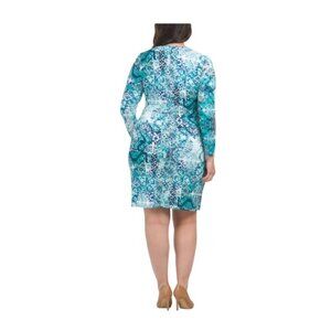 Calvin Klein Womens Blue Green Print Long Sleeve Faux Wrap Sheath Dress Sz 16 W NWT